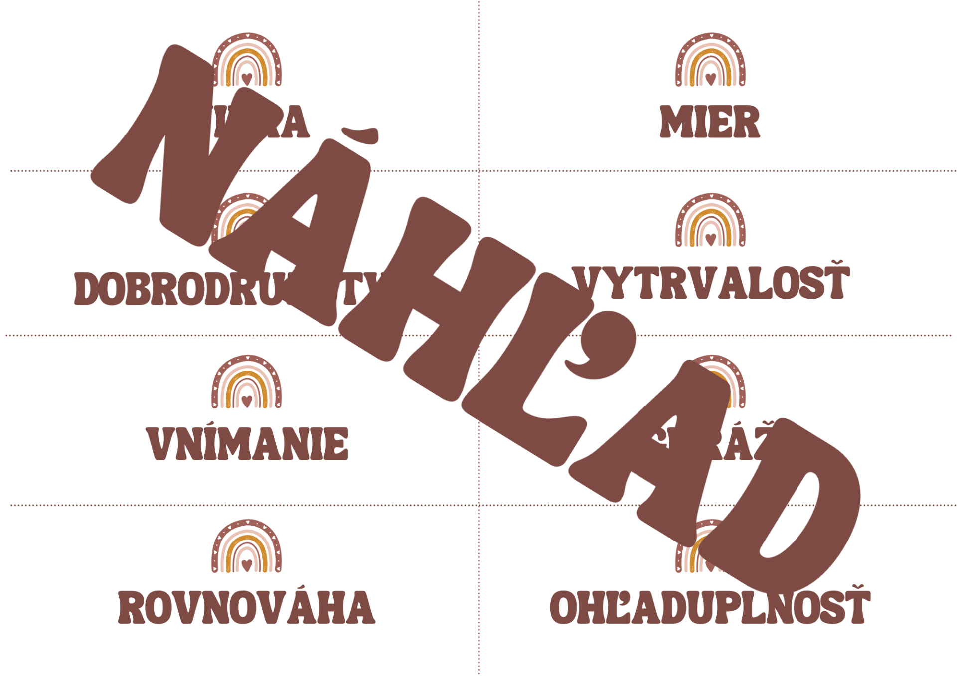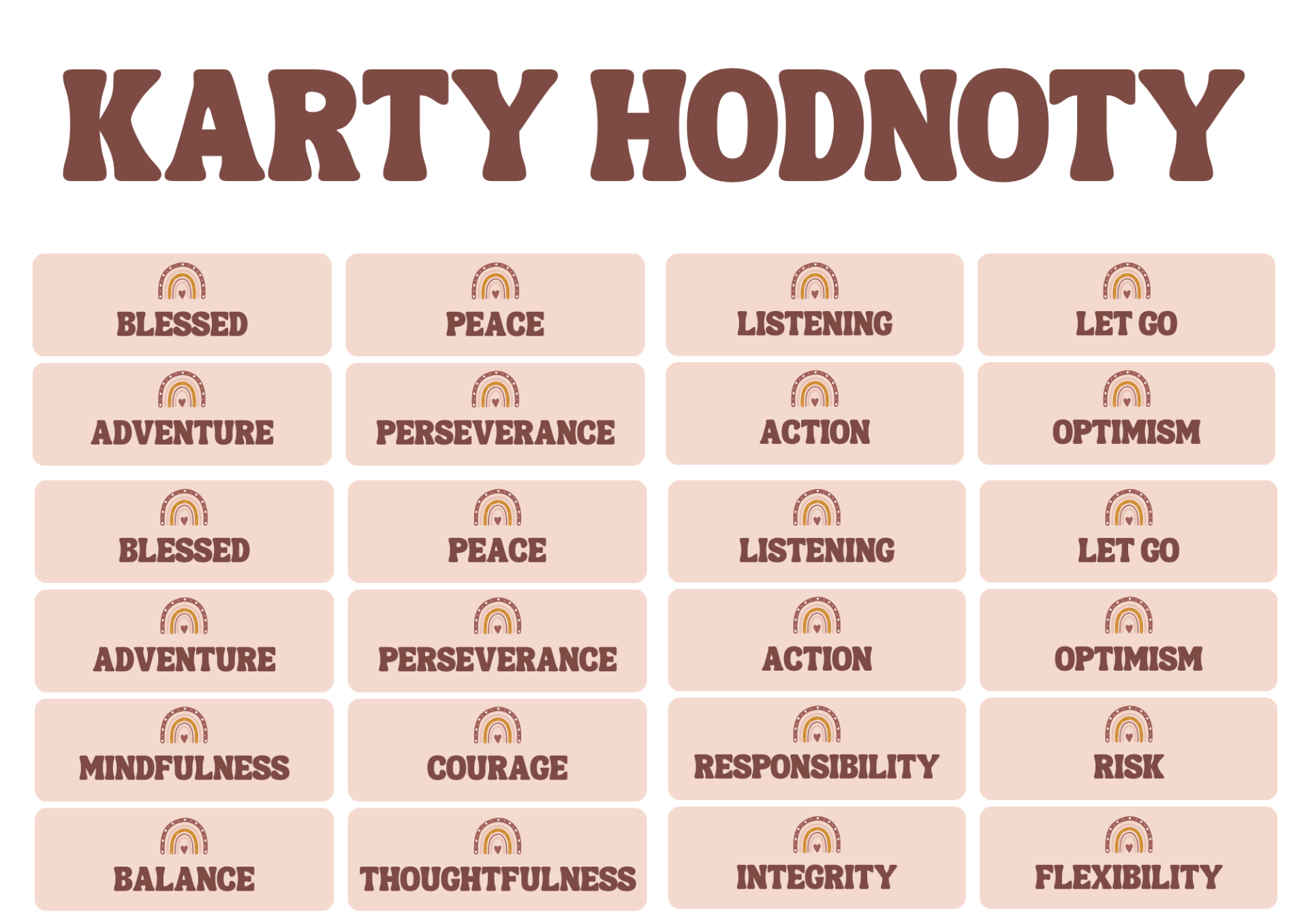 Súbor hodnoty obsahujú 72 kariet s hodnotami, ktoré sa dajú využiť pri rôznych aktivitách.
